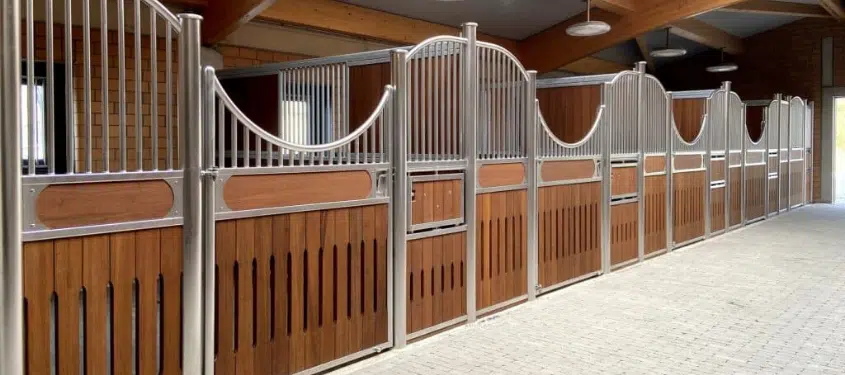 Le bois dur et la résine plastique apporte une touche chaleureuse et traditionnelle à l’écurie, tout en offrant une bonne isolation. Associés à une structure métallique solide, ils garantissent une excellente longévité. L’acier galvanisé ou thermolaqué et l’inox sont particulièrement appréciés pour leur résistance à l’humidité, aux chocs et au temps.