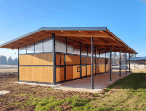 Boxes extérieurs et abris pour chevaux conçus pour allier sécurité, durabilité et modularité. Ils s’adaptent à tous vos besoins. Compatibles avec nos barns, ils sont personnalisables et faciles à installer sur dalle, plots ou bordures béton.