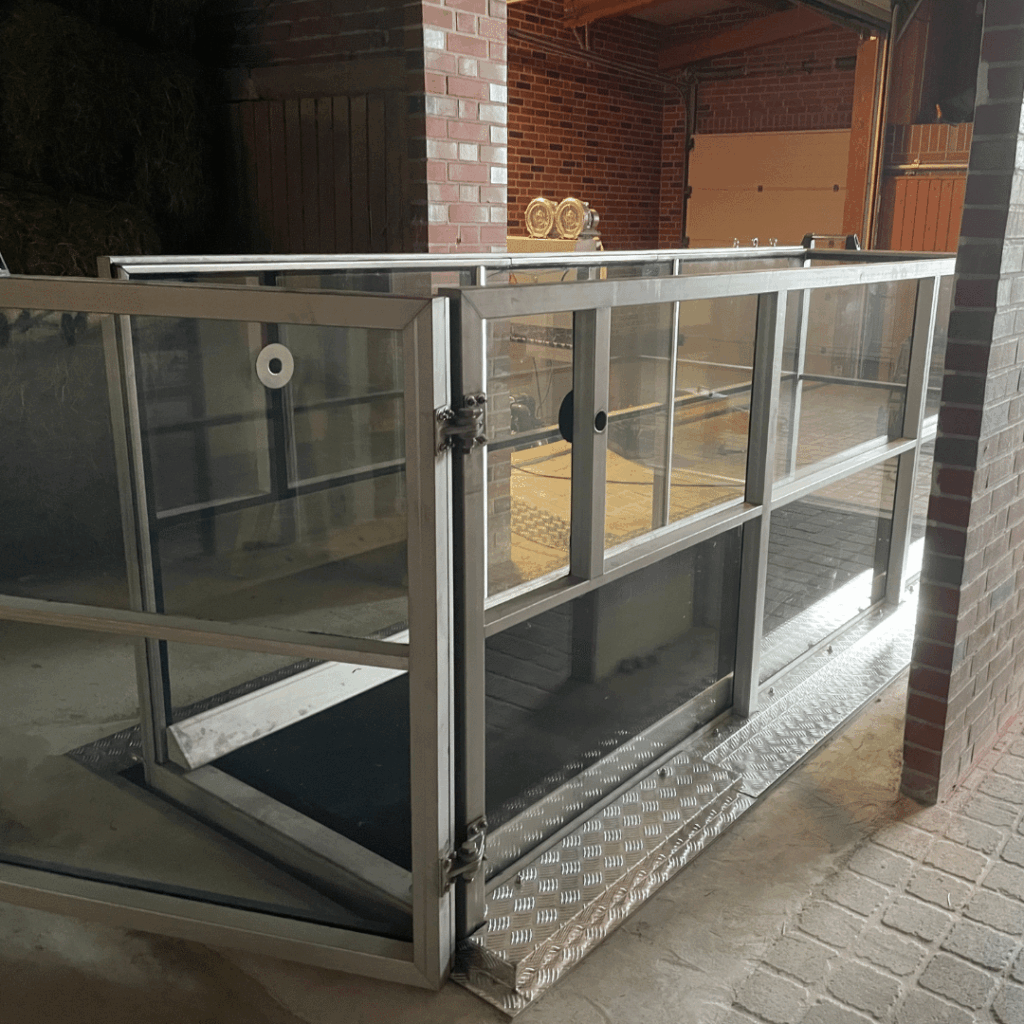 Conçu en acier inoxydable V4A 316L et verre sécurit, l’Equi Shape permet de regrouper en une machine un tapis de marche, un aquatrainer, un spa à eau froide et un sol à vibrations verticales pour l’entraînement, la rééducation et la récupération musculaire des chevaux. Son système de filtration complète de l'eau et sa chloration au sel assurent une eau pure, sans bactéries, pour un bien-être équin optimal.