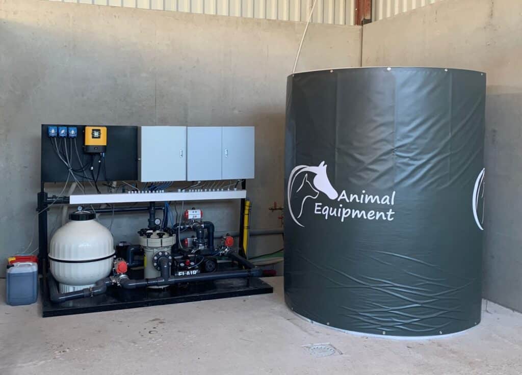 Pour assurer un travail au calme avec votre cheval, il est nécessaire de prévoir un petit local technique d’une superficie de +/- 12 m² pour accueillir le réservoir d’eau et le système de purification de l’eau.