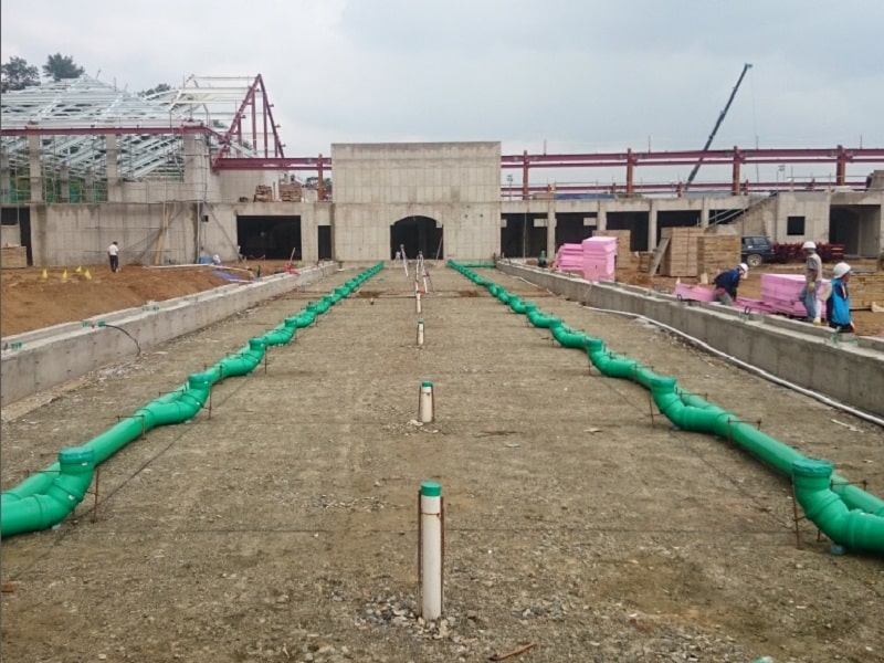 Les canalisations peuvent être enterrées (nouvelles installations) ou fixées au-dessus des boxes (installations existantes)
