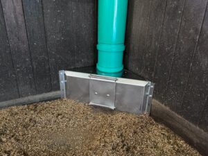 Un système d’aspiration centralisée conçu spécifiquement pour l’évacuation du fumier et compatible avec tous les types de litières (paille, copeaux, granulés, etc…). Grâce à une trappe installée dans chaque box, les déchets sont directement envoyés vers une fumière centrale, sans effort manuel, ni transport de brouette. Chaque trappe reste fermée hermétiquement lorsqu’elle n’est pas utilisée. L’évacuation se fait simplement en l’ouvrant au moment du curage.