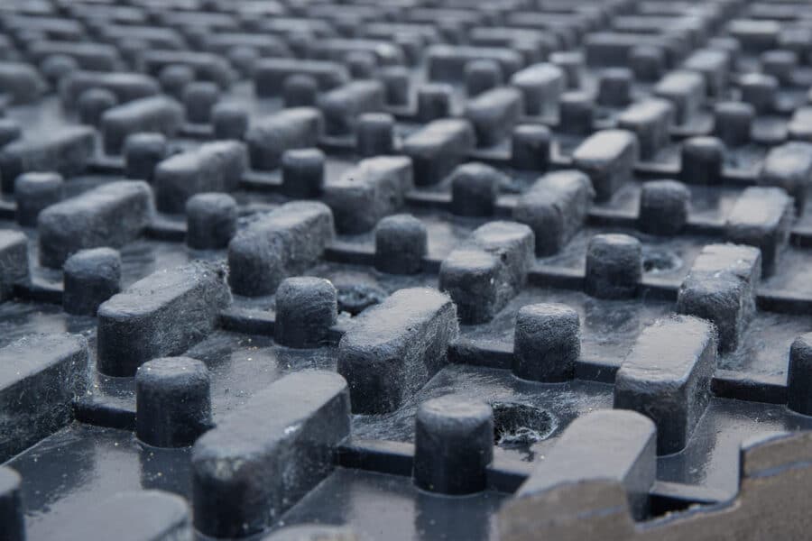Ces dalles percées sont antidérapantes et drainantes, pour des espaces anti-boue.