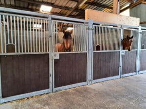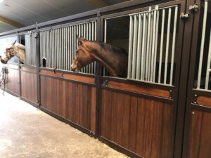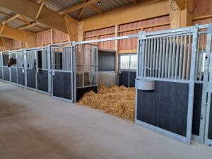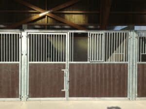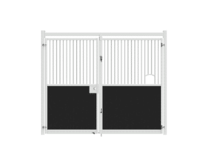 Cette façade de box d’écurie propose diverses options de personnalisation et s’harmonise parfaitement avec les séparations de boxes de la même gamme.