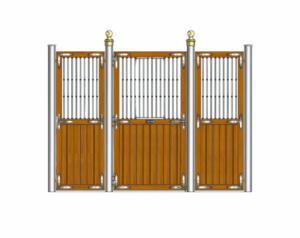 La façade de box à l'ancienne Gut Einhaus à porte battante associe une solide ossature en acier galvanisé, un remplissage en bois résistant et de solides barreaux, pour une résistance optimale à l’usage intensif. Conçue pour les installations équines modernes recherchant des équipements exclusifs, elle offre une solution sobre et personnalisable.