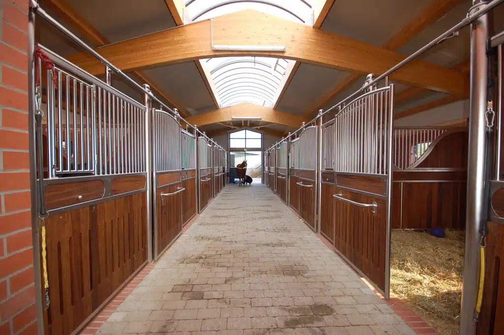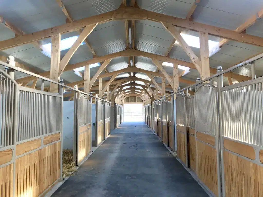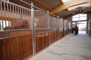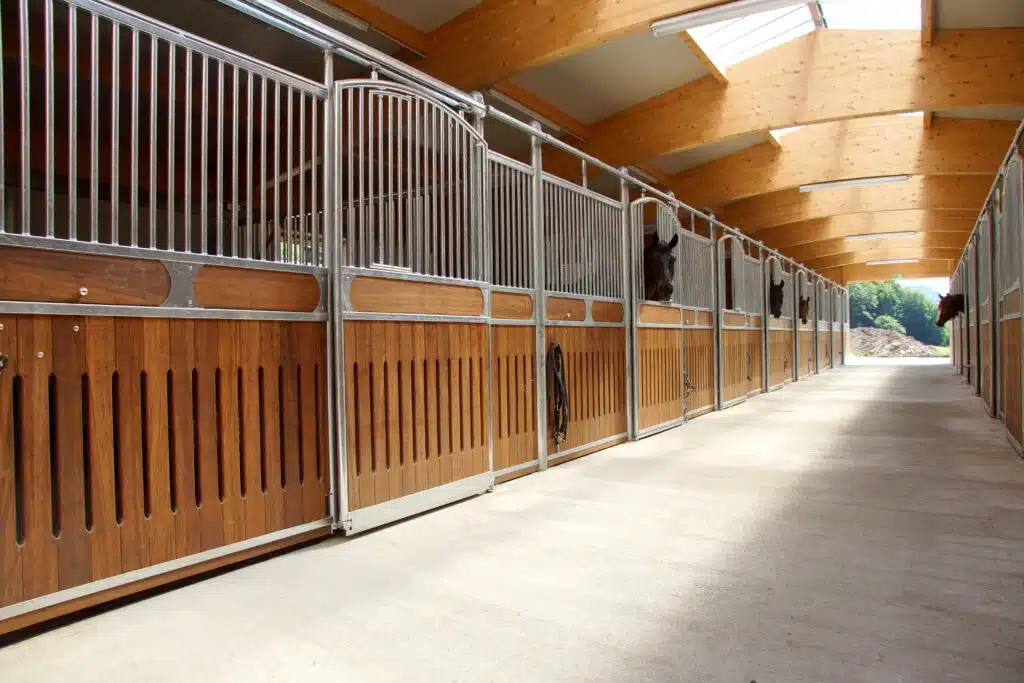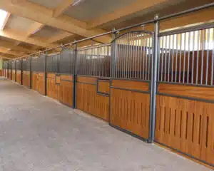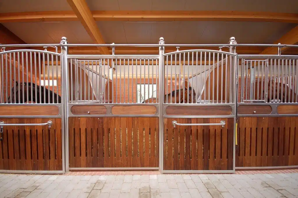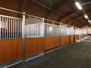 Élégante, robuste et conçue pour la sécurité, la façade de box pour chevaux à porte coulissante Kandel incarne le savoir-faire Laake reconnu dans l’aménagement d’écuries. Grâce à sa fabrication soignée et ses équipements premium, elle offre un confort d'utilisation optimal à l'utilisateur et s’intègre parfaitement à toutes les écuries, qu’elles soient sportives, de propriétaires ou de loisir.