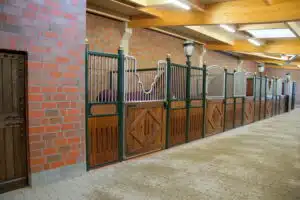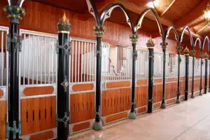 Parfaitement adaptée à toutes les configurations d’écurie, la luxueuse façade de box Lebenstraume est entièrement personnalisable et adaptable aux séparations de boxes de la même collection.