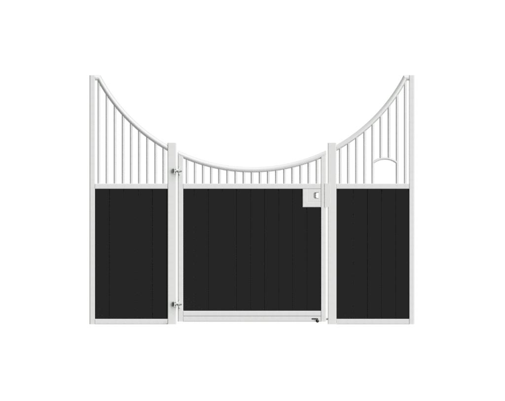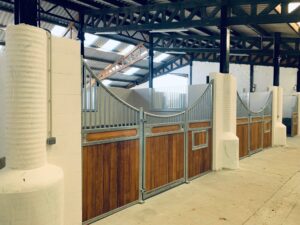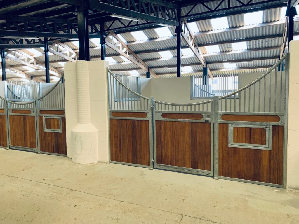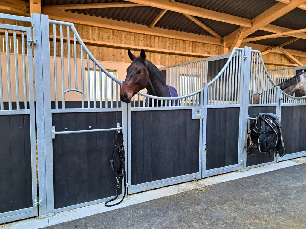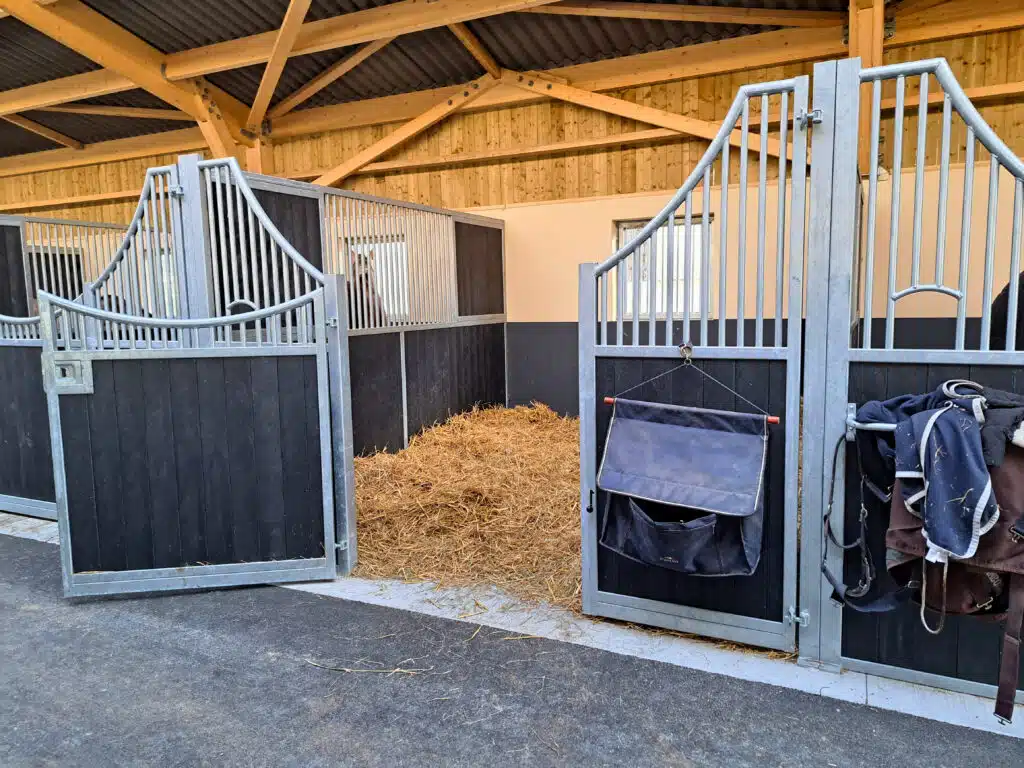 Élégante et fonctionnelle, la façade de box Sierra séduit par sa forme galbée en demi-lune, sa large ouverture de porte et ses finitions soignées. Fabriquée sur mesure, elle est idéale pour créer une ambiance chaleureuse dans toutes les écuries.