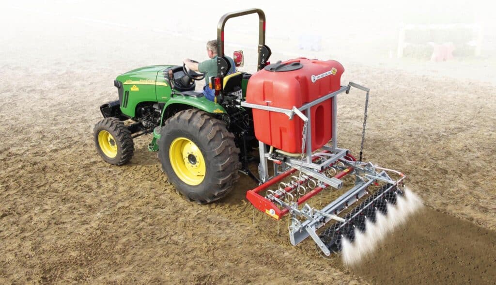 Les herses équipées d’un système d’irrigation intégré permettent de niveler et d’arroser la carrière simultanément. Ce double fonctionnement assure une gestion optimale de l’humidité du sol, limite la poussière et améliore le confort de travail pour les chevaux comme pour les cavaliers. Une solution pratique et efficace, idéale pour les structures souhaitant gagner du temps tout en maintenant une qualité de sol constante.