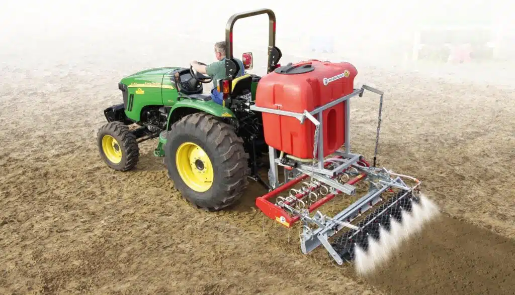 Sur la gamme Rain, l’irrigation est directement intégrée à la herse, offrant une solution compacte et tout-en-un.