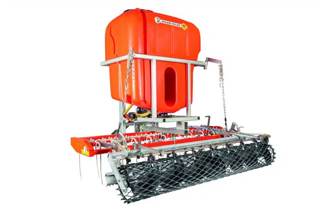 La Platz-Max Rain intègre directement l’irrigation à la herse, offrant une solution compacte pour arroser et niveler simultanément tous types de sols.