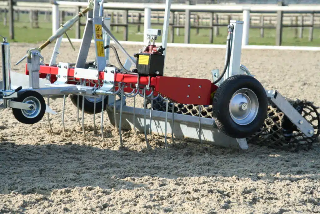 Pensées pour répondre aux exigences des sols équestres modernes, les herses de carrière assurent un travail de préparation et d’entretien essentiel à la performance et au confort des chevaux. Polyvalentes et adaptables, elles se montent sur des châssis hydrauliques compatibles avec différents véhicules de traction – quads, petits tracteurs ou véhicules légers –