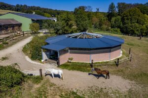 Un bon climat est un facteur crucial pour un entraînement réussi avec des chevaux. Le marcheur Kondi-Trainer avec piste couverte offre une protection optimale pour vos chevaux et cela par tous les temps.