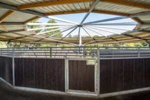 Avec une très grande surface de couverture de piste de plus de 5,50m, vos chevaux restent toujours au sec.