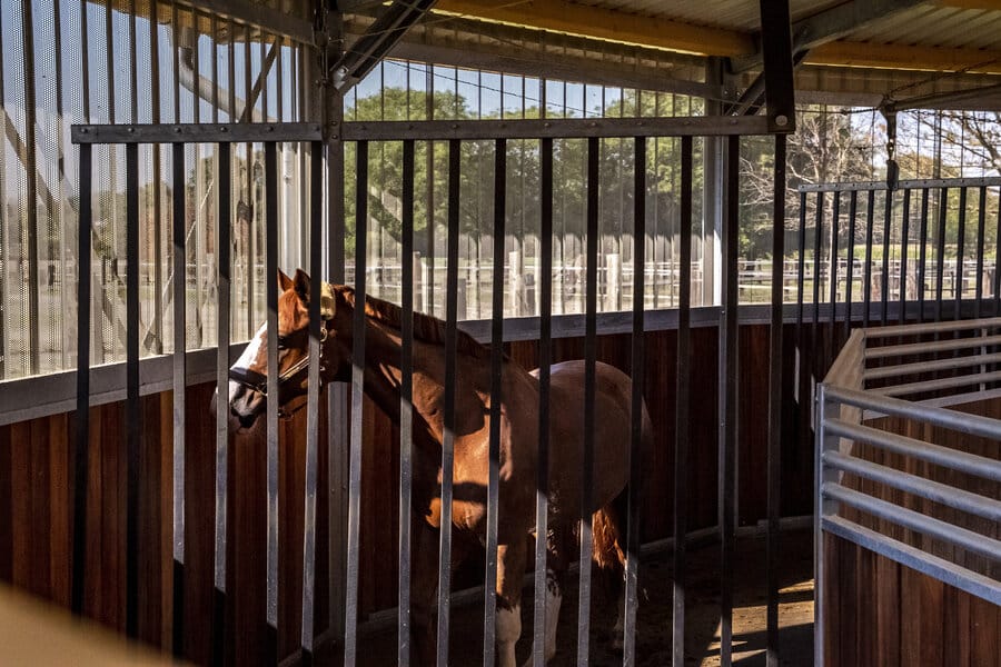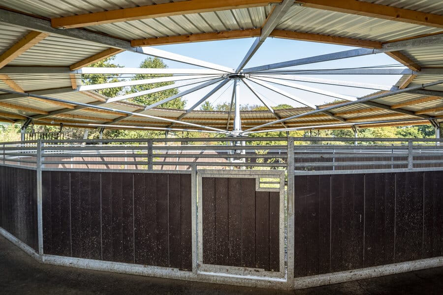 Ce marcheur couvert est équipé du mécanisme Kondi-trainer et peut être proposé avec différentes clôtures.