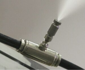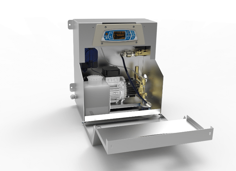 Le système anti-insectes Moskito repose sur une pompe haute pression reliée à une arrivée d’eau et à un réservoir dédié au produit insectifuge. Un réseau de tuyaux équipé de buses de diffusion permet de pulvériser le produit efficacement dans les différentes zones de l’écurie. L’ensemble est contrôlé via un écran de programmation simple et intuitif, permettant un réglage précis de la fréquence et des plages de diffusion.