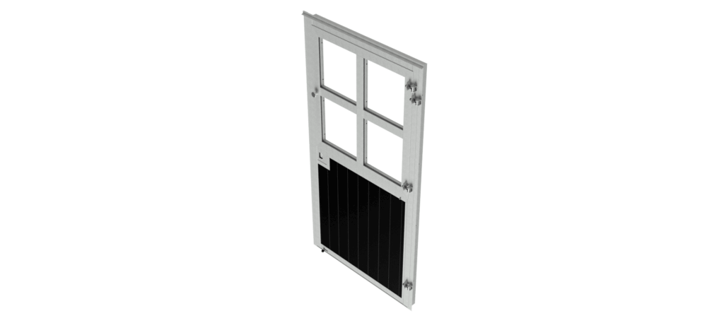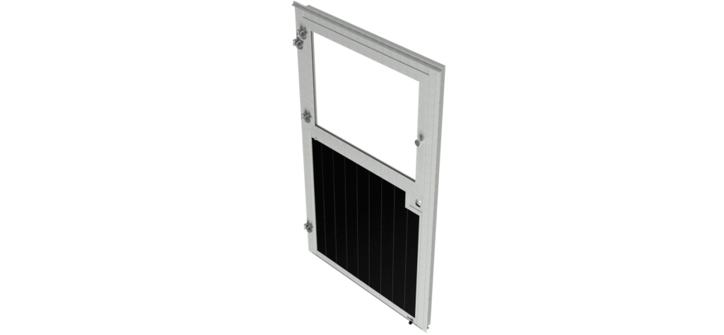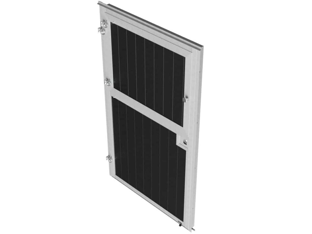 Fabriquées en acier 4 mm avec huisserie cadre 100 x 50 mm galvanisé à chaud, verre sécurit 6 mm et remplissage plein en résine plastiques 32 mm, nos portes de box garantissent robustesse, durabilité et protection efficace contre les coups de sabots et l’usure. Equipées d’un loquet à doigt accessible des deux côtés et d’une poignée tournante sur la fenêtre, les portes de box sont pratiques et faciles à manipuler au quotidien.