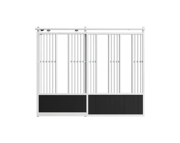 La porte de box pour chevaux coulissante permet un gain de place indispensable dans les espaces restreints. Conçue en acier galvanisé à chaud avec remplissage en résine plastique 32 mm, elle est robuste et durable.
