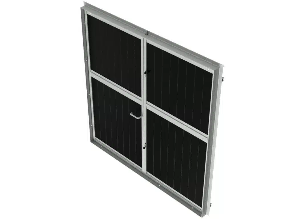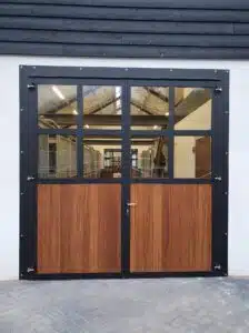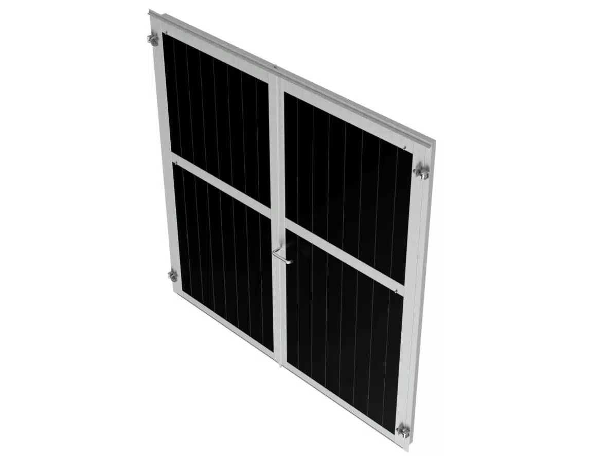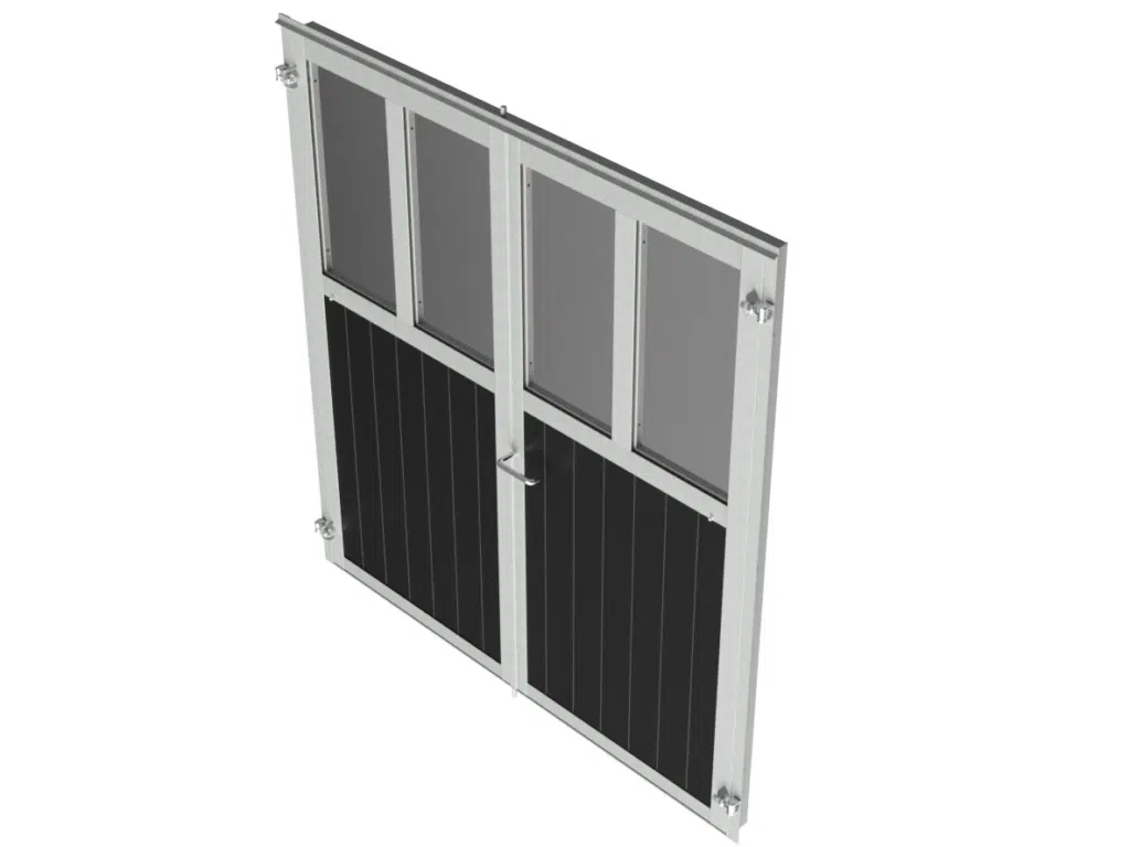 Porte d'écurie battante en deux parties avec robuste huisserie cadre en acier galvanisé à chaud et remplissage en résine plastique 32 mm.