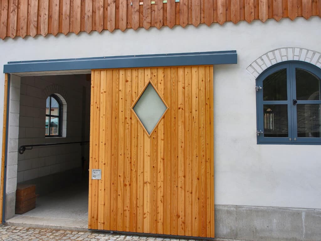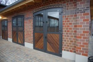 Fabriquées en acier galvanisé à chaud (norme DIN EN ISO 1461), les portes d’écuries garantissent robustesse, durabilité et résistance face aux conditions exigeantes des environnements équestres. Elles confèrent un style harmonieux et chaleureux à chaque bâtiment équestre. Les portes d’écurie battantes ou coulissantes sont personnalisables et permettent de répondre à tous les besoins pour un résultat sur mesure qui valorise votre écurie et optimise la sécurité et le confort.