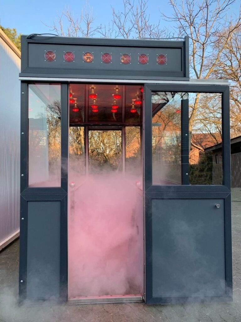 Salle d’inhalation pour chevaux : améliore la respiration, renforce l’immunité et favorise la récupération grâce à un microclimat salin naturel. Option solarium infrarouge et chromothérapie pour un bien-être renforcé.