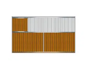 Réalisée sur mesure, avec options de personnalisation, cette cloison de box pour chevaux s’adapte aux aménagements d’écurie neufs ou rénovés et se combine parfaitement aux façades de boxes de la même gamme.