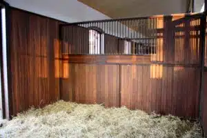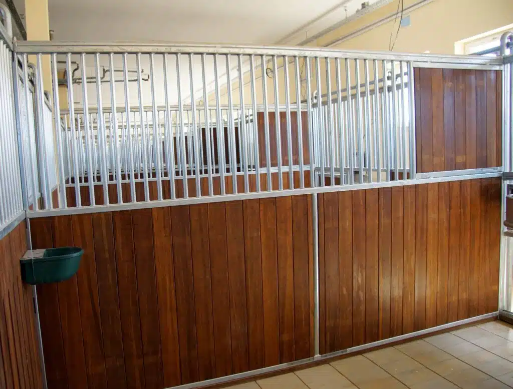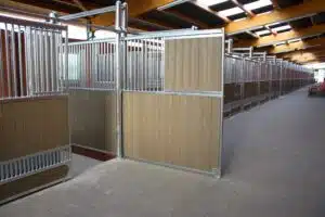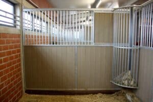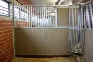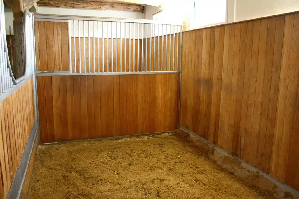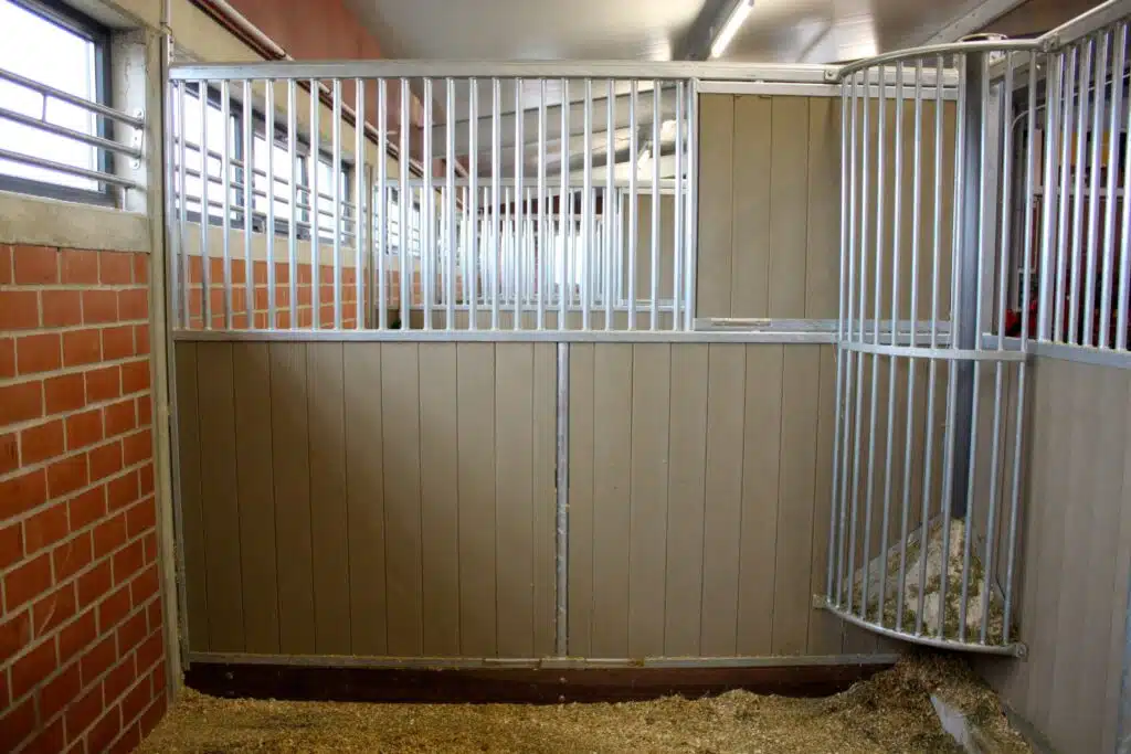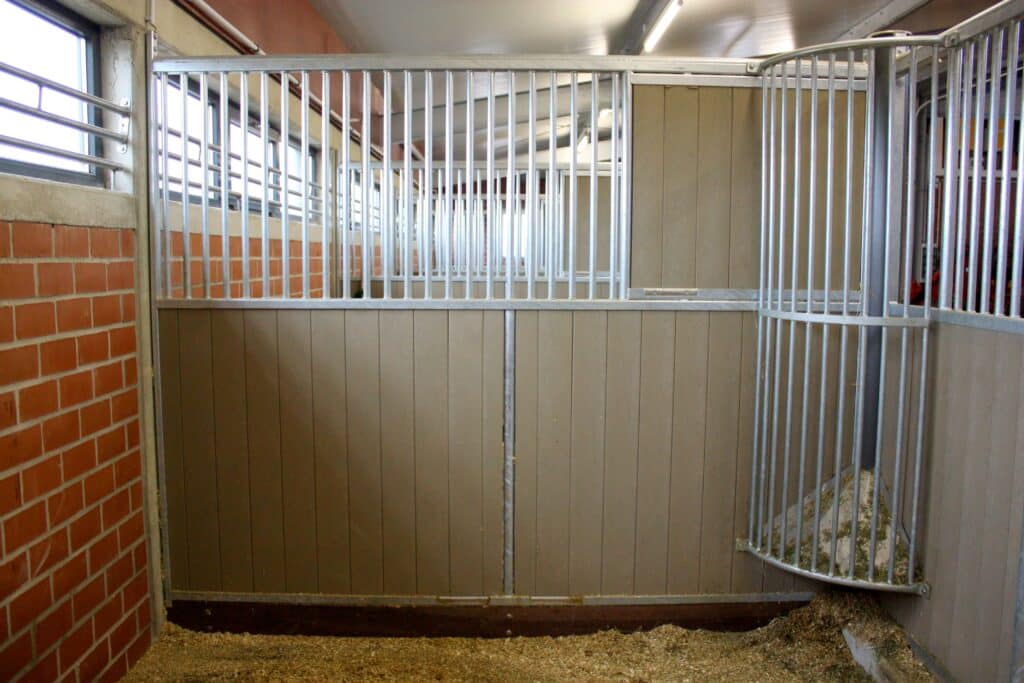 La séparation de box fermée 1/3 offre une protection au niveau de la mangeoire et évite les tensions entre chevaux lors des repas.