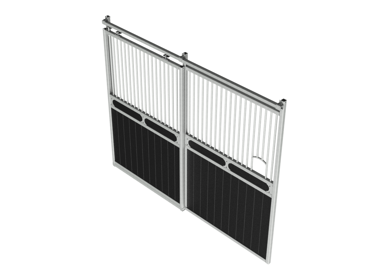 Élégante et durable, cette cloison de box s’harmonise avec les façades de la même gamme et s’adapte à tous les types d’écuries et de chevaux.