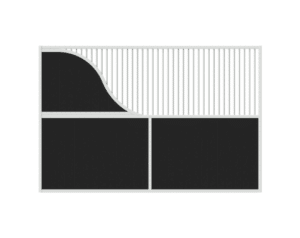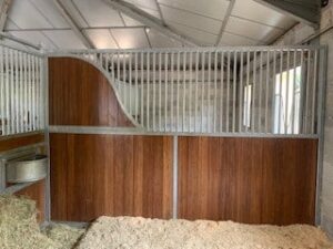 Séparation de box barreaudée et fermée 1 m au design galbé apporte du style à votre écurie tout en favorisant la sérénité entre les chevaux.