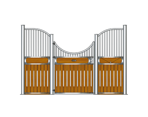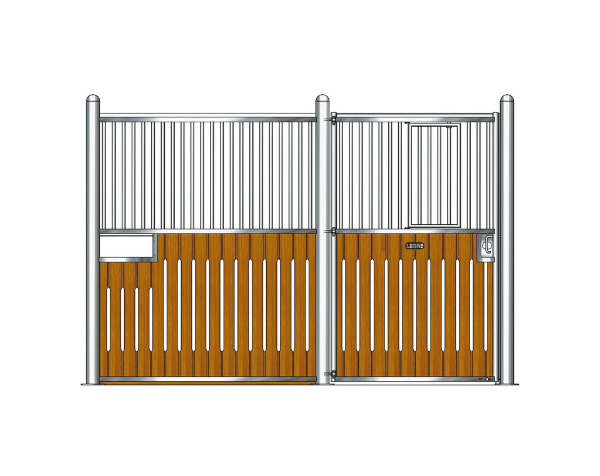 La séparation de box pleine pour chevaux est conçue pour offrir un isolement entre chevaux, tant sur le plan visuel qu’acoustique. Son design plein limite les interactions directes, réduisant ainsi le stress, l’agitation ou les comportements anxieux chez certains chevaux. Elle est particulièrement recommandée pour les chevaux sensibles et les étalons. Sa structure robuste en acier galvanisé à chaud (norme DIN EN ISO 1461) lui assure une excellente solidité. Le remplissage est réalisé en planches de bois exotique dur de 38 mm, montées en tenon-mortaise, pour une stabilité parfaite et une finition durable. Les barreaux sertis, le tube supérieur arrondi de 42 mm et la semelle de finition en bois dur de 30 mm témoignent du soin apporté aux détails de finition et à la durabilité des équipements.