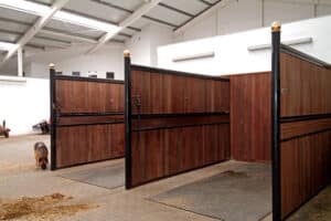Conçue pour garantir calme et isolement entre chevaux, la séparation de box fermée assure une excellente intimité visuelle et sonore. Idéale pour les chevaux sensibles ou les installations recherchant un maximum de tranquillité, cette cloison pleine contribue au bien-être équin et à la sécurité dans l’écurie.