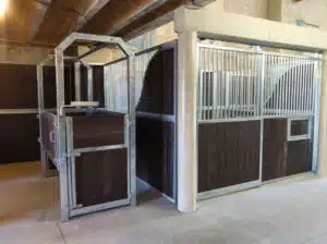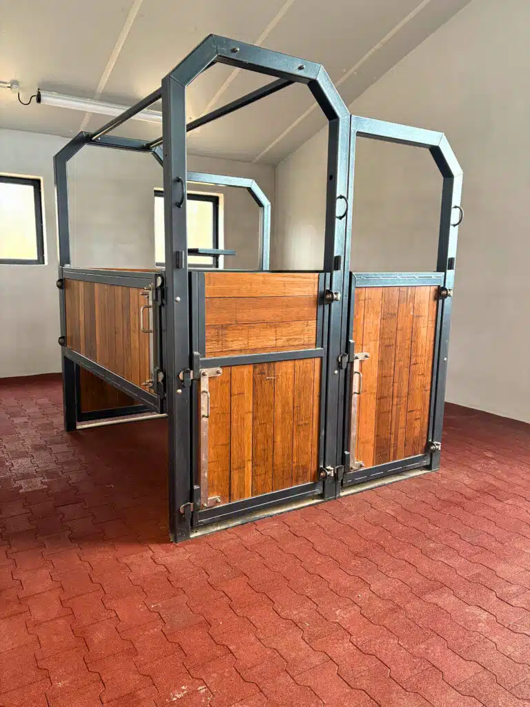 La stalle d’examen, également appelée stalle de contention, est conçue pour garantir une immobilisation sécurisée du cheval lors des soins vétérinaires, échographies, prises de sang ou autres examens. Fabriquées à partir de matériaux robustes et durables et de divers équipements pratiques et sécurisés, la stalle d’examen Van den Oetelaar répond aux attentes des professionnels. En option, une stalle à poulain peut être fixé à côté box principal.