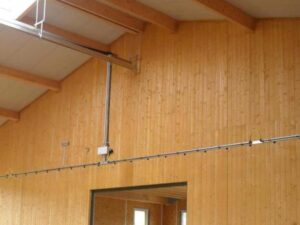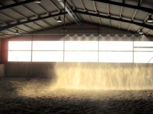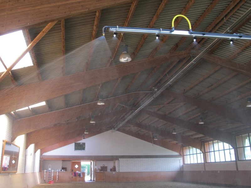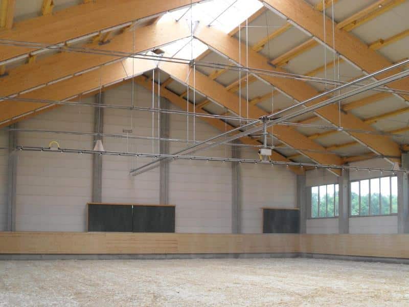 Le système d’arrosage mobile “Aquamobil Comfort” arrose et humidifie de façon optimale le sol de votre manège. Fixé sous la toiture et discret, il s’adapte aux contraintes liées à chaque environnement.