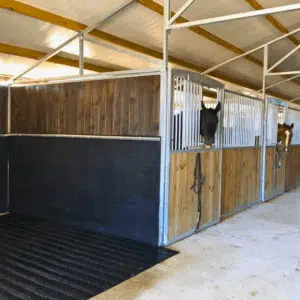 Les revêtements muraux assurent une protection efficace des soubassements de boxes tout en prévenant les blessures liées aux coups de pieds.