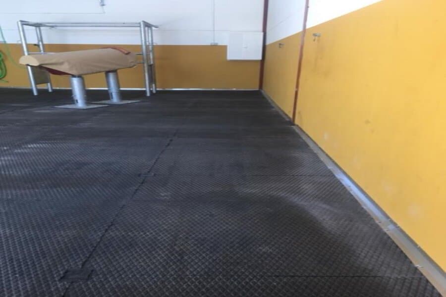 Le revêtement de sol pour écurie Delta Diam est conçu pour apporter le confort de marche à vos chevaux. Antidérapant, il assoupli le sol et permet de protéger les tendons et les articulations lors des déplacements des animaux sur des surfaces béton.